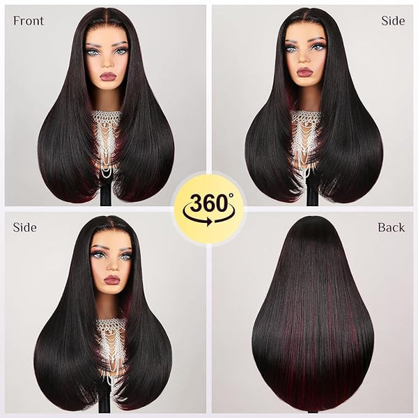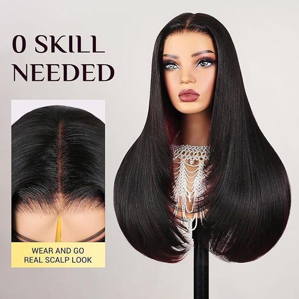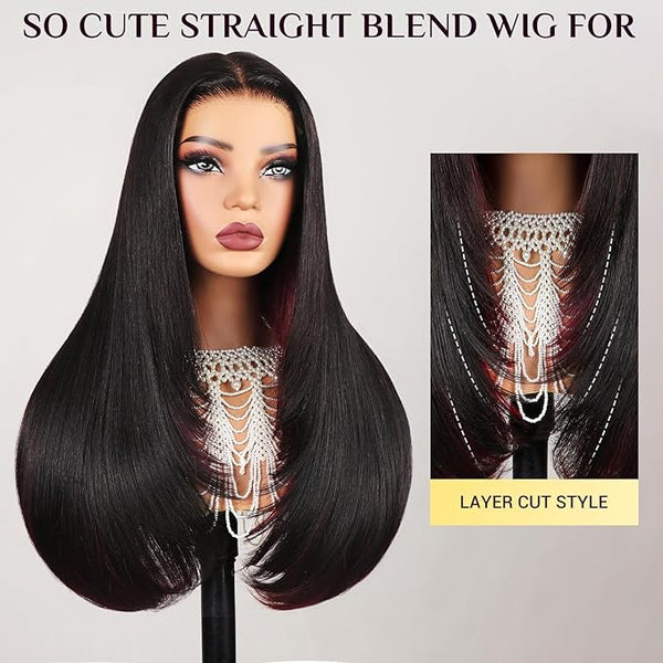 TESLAL Blend Wig Pre Cut Lace Wear and Go Glueless Wig Layered Straight 6X6 HD T Part Lace Closure Wigs Premium Fiber and Human Hair Blend Wig With Highlight Brown Color