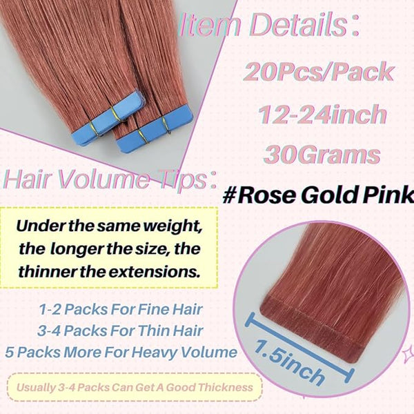 Please Notice: The pink tape in hair extensions are thicker at the top and thinner at the bottom, this is to fit our real hair more naturally.