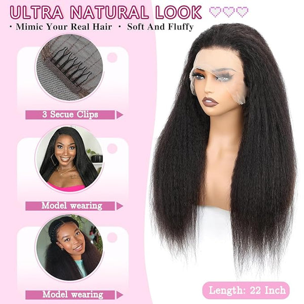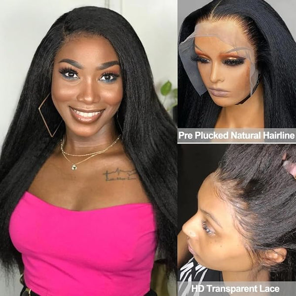 Upgrade your collection today with our 13x6 kinky straight wig, a perfect choice for those who desire a bold and stylish look without sacrificing quality. Embrace your inner beauty and express yourself confidently with this must-have yaki straight lace front human hair wig!