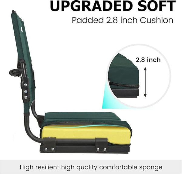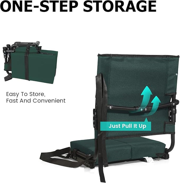The bleacher chairs with back support can easily fold up and be carried around with the included carrying strap.