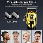 The blade of this barber clipper adopts precision high carbon steel blade, which can maintain long-term sharpness without pulling the hair. You can easily control the hair length and trim a variety of hairstyles with adjustable taper lever and guided combs.