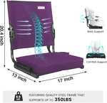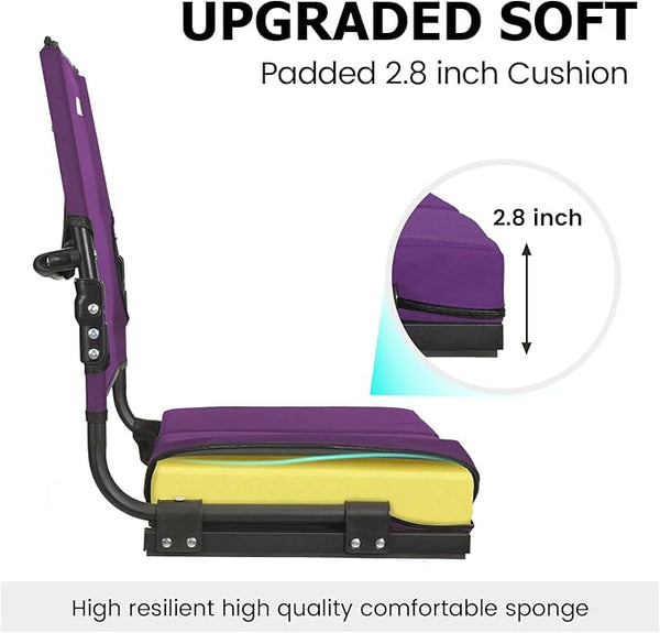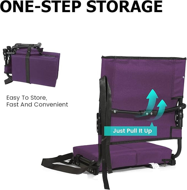 The bleacher chairs with back support can easily fold up and be carried around with the included carrying strap.