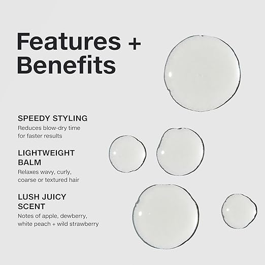 Relaxing balm smooths hair while helping to protect from heat styling and locking out frizz.