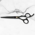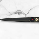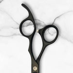The Saki Chisai hair shears are beautifully constructed with a matte black finish. Japanese steel is used due to it's ability to maintain a razor sharp, super hard edge.