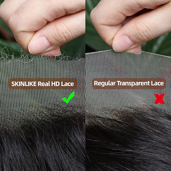 SKINLIKE real HD lace is born for the highest standard oflace wig--a real and natural look, so it used the top Swisslace as raw material. lts lace is ultra-thin and transparent.It's hard to find the lace grids when you cover it on the skin(any skin tone). lt makes hair look like it grows out of theskin.