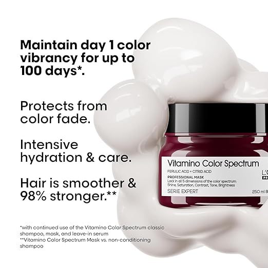 From the manufacturerWhat is Vitamino Color Spectrum mask?How do you use Vitamino Color Spectrum mask?Who is it for?What is Vitamino Color Spectrum mask?This is a moisturizing mask for all colored...