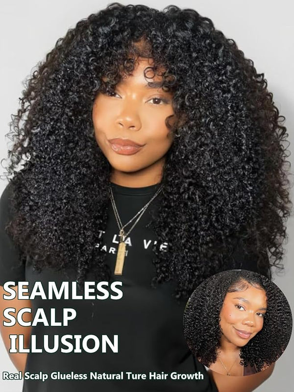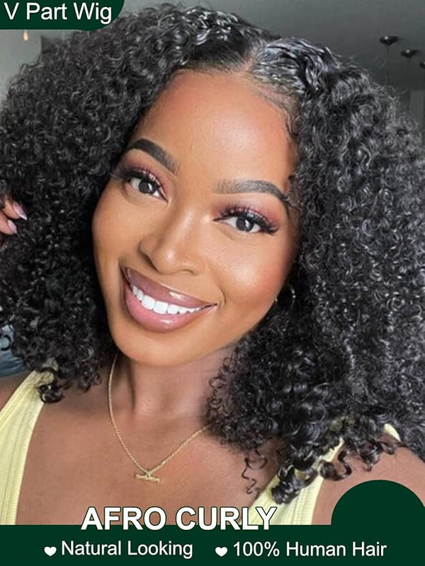 KLAIYI EasiContour V Part Kinky Curly Wig Human Hair
