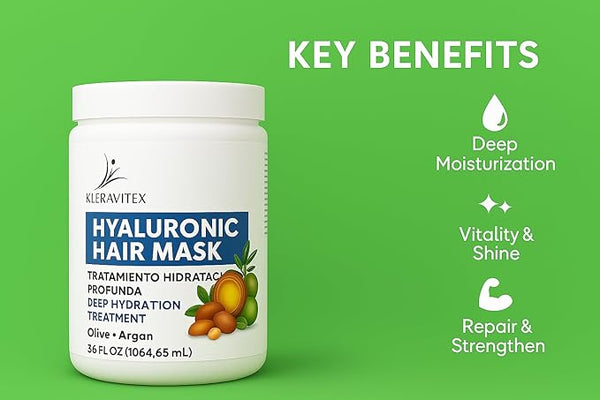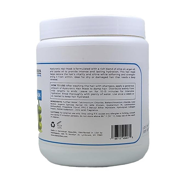 Hyaluronic Hair Mask Formulated With a Rich Blend of Olive Oil and Jojoba Oil - Lasting Hydration for Dry or Damaged Hair, Restore Vitality and Shine