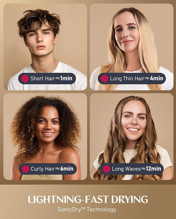 Yes! Its 110,000 RPM brushless motor delivers 65 m/s airflow (lab-tested), cutting drying time by 80% vs. standard dryers.