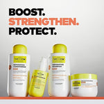 The formula is vegan and free from ingredients of animal origin and derivation. The repairing hair care products include three unique active ingredients that help weakened and damaged hair.