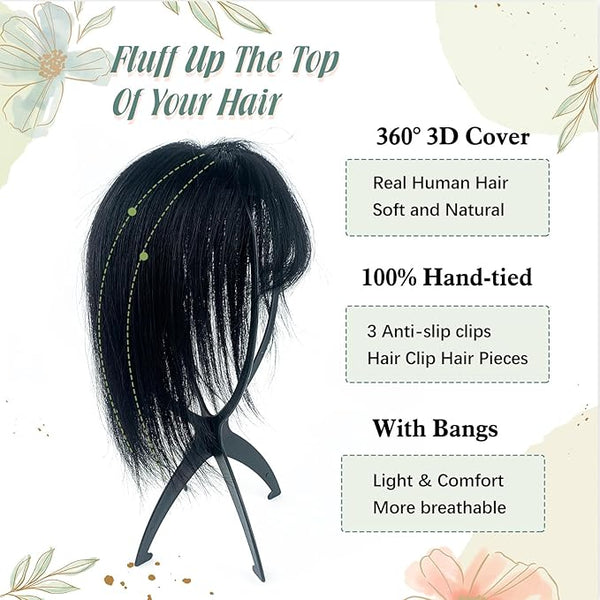 Product descriptionReal Human Hair Toppers, 360¡Æ 3D Hair Toppers for Women with Thinning HairThe Human Hair Toppers Details:The hair topper Improve appearance, help hair loss sufferers regain confidence.Variety colors: black,...