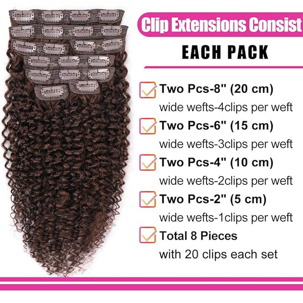 Kinky Curly Clip Ins 100% Unprocessed Brazilian Remy Human Hair Extension