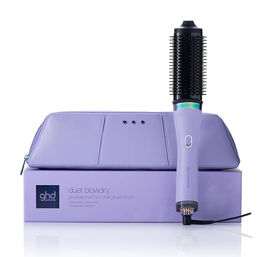 ghd Duet Blowdry in Galactic Lilac with heat-resistant case.