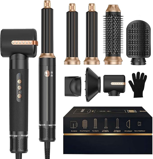 Product description7 in 1 hair dryer brushThe product stops working?Long Press power button 2s to TURN ON or TURN OFF the hair dryer .Is the wrap curling iron easy to...