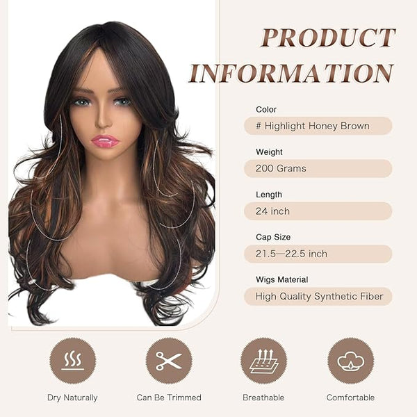 Product descriptionLong Layered Wavy Wig With Curtain Bangs for WomenA variety of colors for you to choose