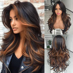 Long Layered Wavy Wig With Curtain Bangs for Women