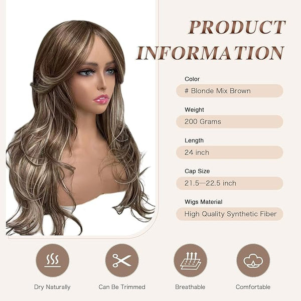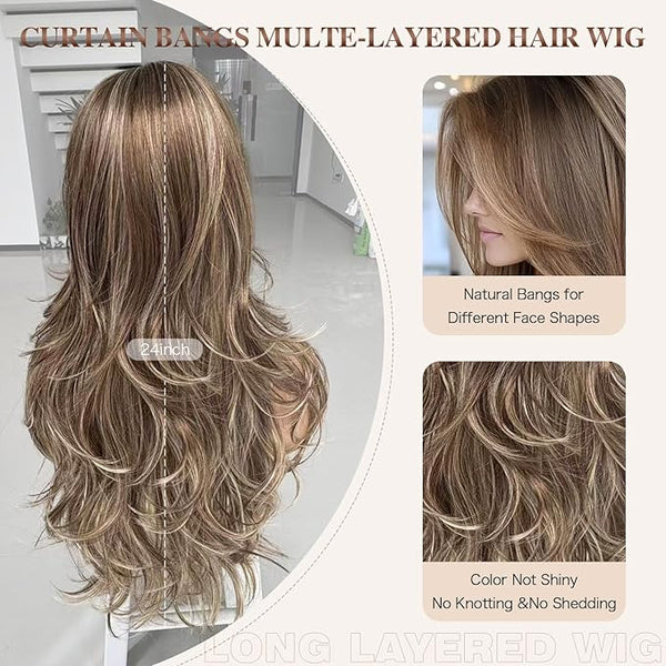 Product descriptionLong Layered Wavy Wig With Curtain Bangs for WomenA variety of colors for you to choose