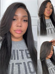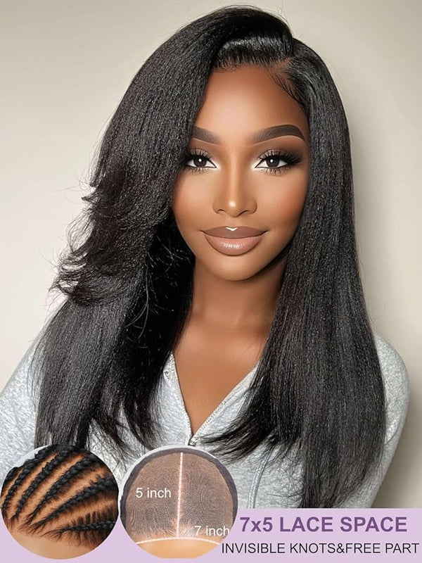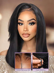 Light Yaki straight lace front bye bye knots human hair wig with side bangs