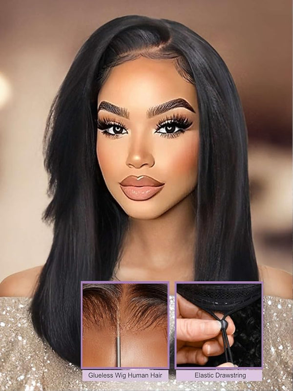 yaki straight bangs wig human hair bye bye knots glueless wig with drawstring