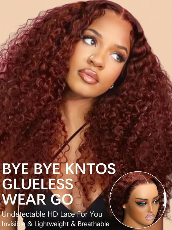 KLAIYI Bye Bye Knots Wear and Go Glueless Reddish Brown Curly Wig