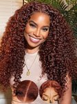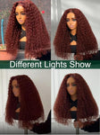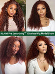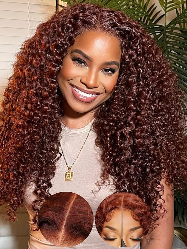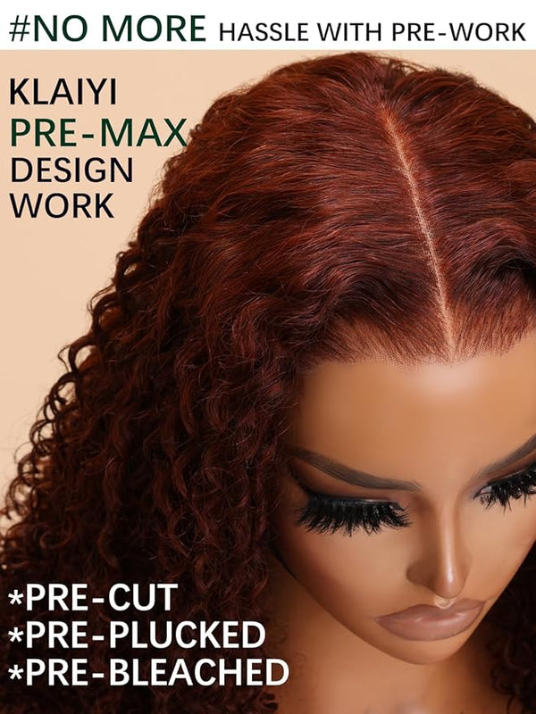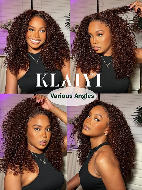 KLAIYI Pre Everything Glueless Reddish Brown Curly Wig with Invisible Drawstring
