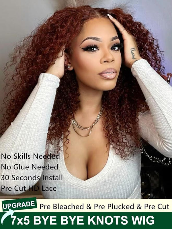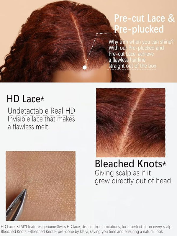 Product descriptionKLAIYI Bye Bye Knots Glueless Wig Reddish Brown Curly Wig Human HairKLAIYI pre everything curly wigsKLAIYI Pre Cut 7x5 Lace Front Wigs Human Hair DrawstringKLAIYI 30S Ready to Wear...