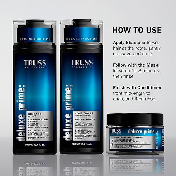 Product descriptionDiscover TRUSS Deluxe Prime CollectionShop Your TRUSS Hair Care RoutineThis is a modal window.Deluxe Prime MaskDeluxe Prime ShampooDeluxe Prime ConditionerHair Treatment SprayDeluxe Prime Oil