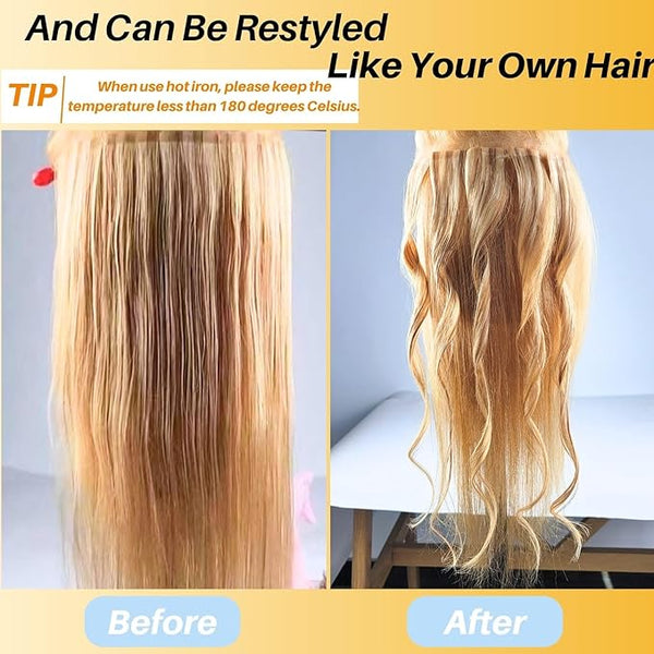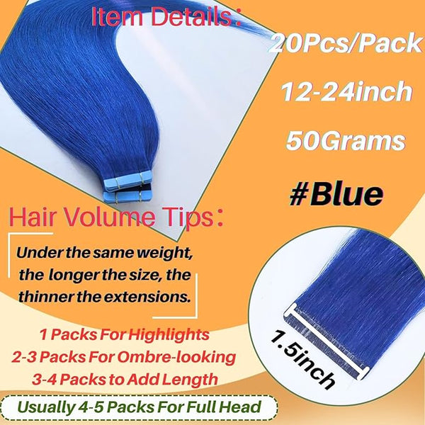 Blue Tape in Hair Extensions Human Hair 20Pcs/Pack 50Grams 14 to 24Inch