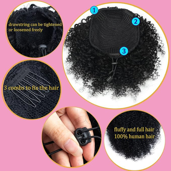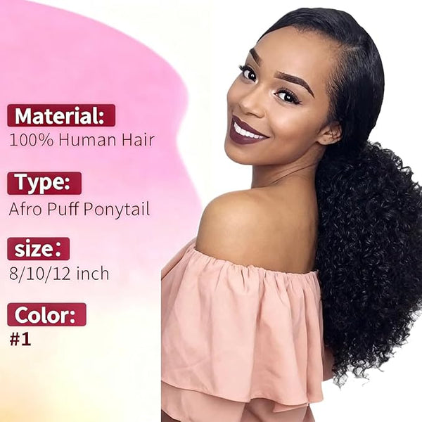 Product descriptionDetails of The Ponytail Extension Human Hair Display,Hight Quality Remy Hair3 CombsDrawstringSpring Fastener100% Human HairHow to Put on This Afro Puff Drawstring Ponytail in few minutesAfro Puff Drawstring Ponytail...
