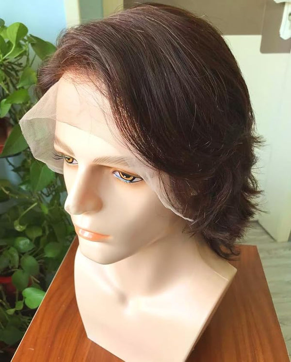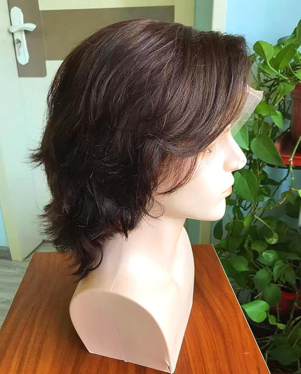 Men's layered Cut hairstyle Pre Styled Full Lace Wig