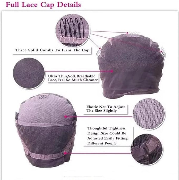 full Lace Front Wig Has Breathable Net, There are Several Adjustment Straps and Clips on Top, Back and Both Sides, Which Can be Tied Together, and You Can Adjust the Elastic Strap to Make it Fit Your Head Size