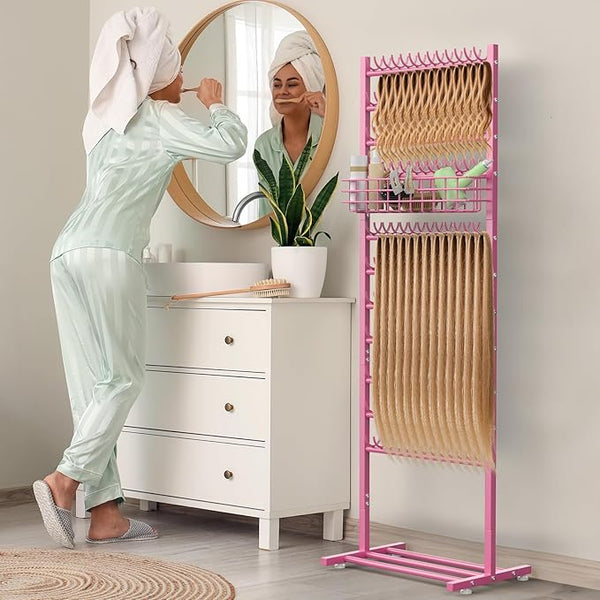 Our pink hair braiding rack is made of high-quality metal materials, which are sturdy and durable;