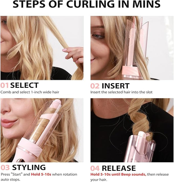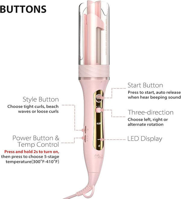 Product descriptionBeach wave curling wandHow to use this curling wand?How to use this curling wandFeatures of Automatic Rotating Curling IronCurling Iron for Long Hair(11"-25")Easy Styling for Long HairAutomatic curling iron...