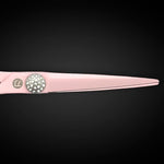 The 440C stainless steel blades are designed for exceptional sharpness, durability, and corrosion resistance, making them ideal for professional use. The sleek finish enhances the refined look of the shears, while the sophisticated pink handle adds a touch of elegance and individuality. This combination of high-performance steel and striking design creates a pair of shears that not only deliver precision and reliability but also stand out as a statement of craftsmanship and style. These shears offer the perfect balance of functionality and aesthetic excellence, making them a must-have for stylists who value both performance and appearance.