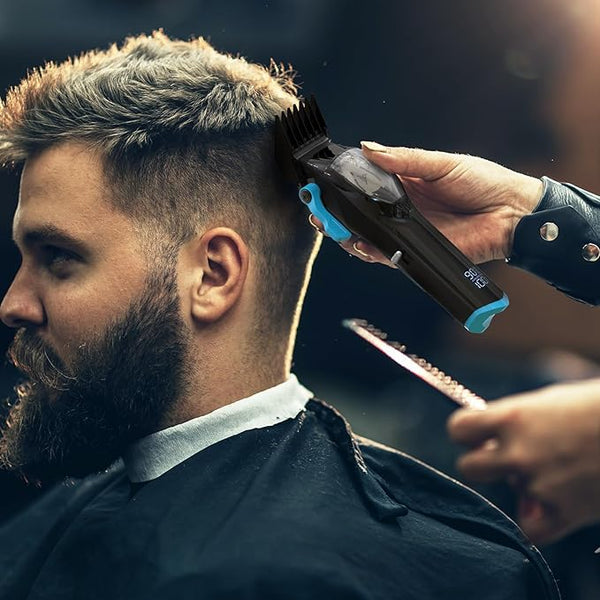 The MK10 delivers pro-level performance with a 9,000 RPM brushless motor and advanced ceramic DLC blade. Designed to cut smoothly through any hair type, it runs cooler, sharper, and longer for lasting precision. Cordless and USB-C rechargeable, it features a digital display for battery and RPM monitoring. Includes eight guards, barber comb, cape, blade oil, and cleaning brush for a complete haircut kit.