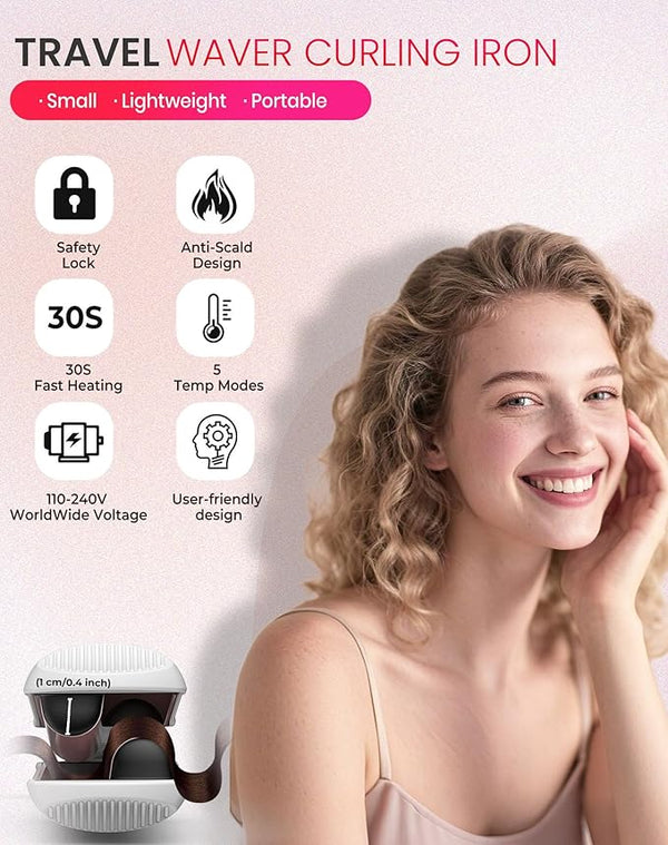 Product descriptionMini Waver Hair Tool Travel8-10S Quick Styling110-240V dual voltage, with EU/UK conversion plug, the curling iron can automatically adapt to the local voltage when used withConvenient for global travel/everyday...