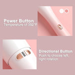2. Press the rotate button. Hold the hair ends as the curler wraps hair.