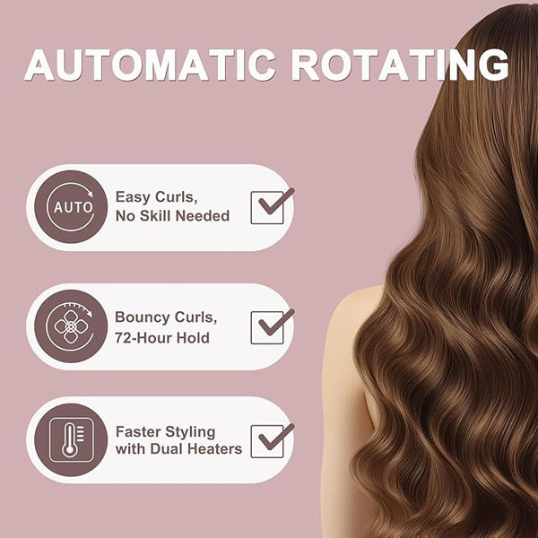 1.26 inch automatic rotating curling iron ensure even heat for smooth styling, while airflow cools and locks in frizz-free looks.