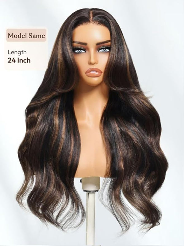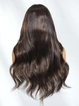 unice dark brown with caramel highlights yaki loose wave glueless drawstring wig