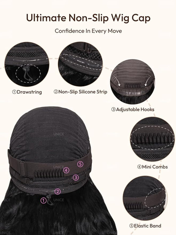 unice 13x4 lace front wigs human hair yaki loose wave glueless drawstring wig