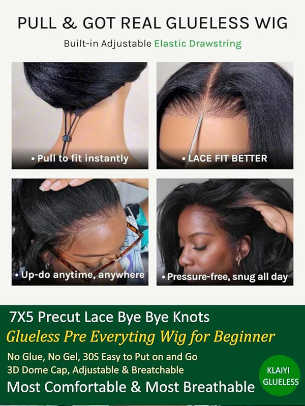 Bye bye knots 7x5 HD lace Melt all skins, More Lager Lace, More Flexible, can be free part(middle part or partial part). New 3D Elastic Dome Cap, Soft and Breathable. New Drawstring Design, Fits All People Heads. Adjustable Elastic Belt To Keep The Wig Secure.