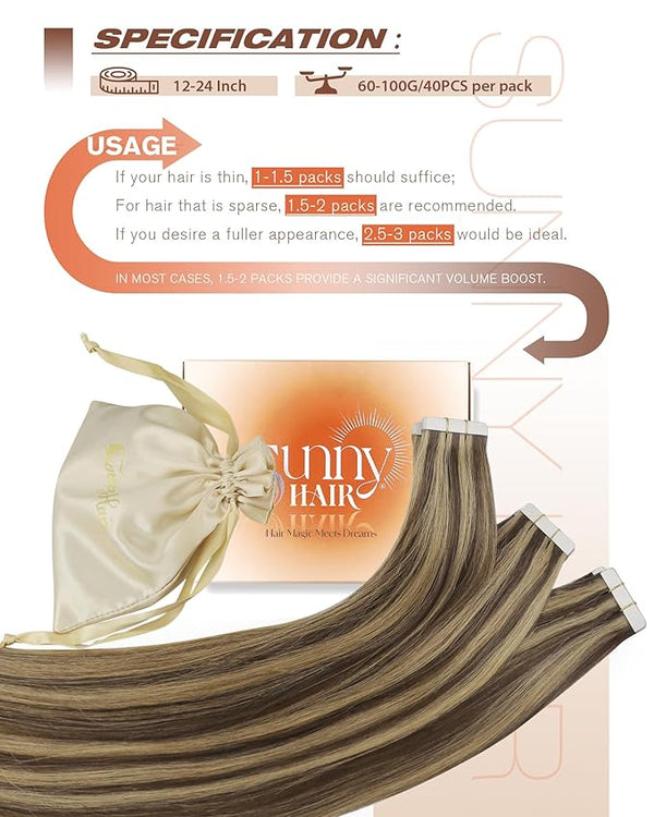 Product descriptionSunny Hair Highlight Tape in Hair ExtensionsSunny Hair Highlight Tape in Hair ExtensionsLearn More Product DetailsReal Human Hair & Double Sided America White TapeLightweight & Invisible & ComfortableTurn the...