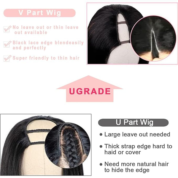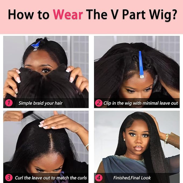 V PART WIG HUMAN HAIR KINKY STRAIGHT WIG UPGRADE U PART HUMAN HAIR WIG