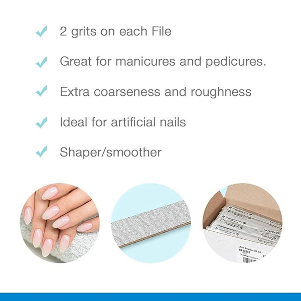 Shape and smooth your nails with double-sided grits without damaging your nails! The 100 grit quickly reduces excess nail length and 180 grit which smooths and refines edges.