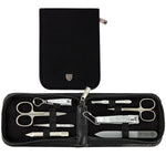 Each of our manicure sets comes in an attractive and sturdy gift box. In addition, our brochure "Fingernail and Toenail Care" is included with each set. You can find a lot of general information there, an overview of the most important manicure and pedicure instruments as well as some tips for caring of the case. A fine microfiber cloth for cleaning the contained steel instruments is also included in the case.