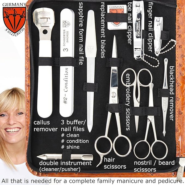 3 Swords Germany - Brand Quality 23 Piece Manicure Pedicure Grooming kit Set for Professional Finger & Toe Nail Care Tweezers File Clipper Fashion Leather case in Gift Box Made by 3 Swords (7452)