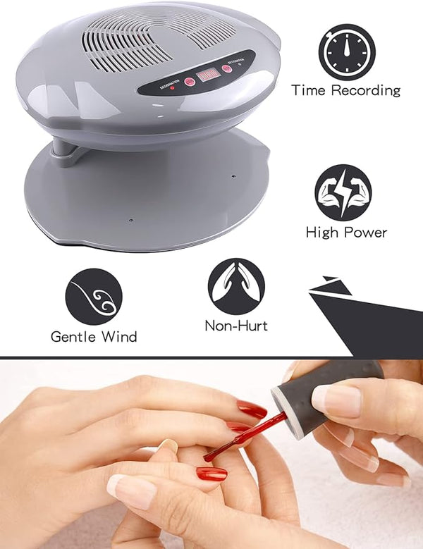 Product descriptionAir Nail DryerAir Nail Dryer, Kalolary 400W Air Nail Fan Blow Dryer for Nail Polish Intelligent Automatic Sensor Hot & Cold Air Nail Polish Drying Fan Manicure Tool for...