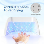 Our led nail light with a portable handle, more convenient to move and carry. You can do beautiful DIY nails anytime and anywhere with this rechargeable nail uv lamp.