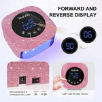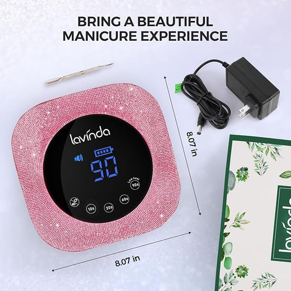 Shiny pink rhinestones professional nail lamp. It's ideal as a gift to your family and friends. Enjoy ideal professional salon nail art easily and freely at home with our gel nail uv light.