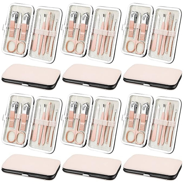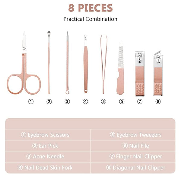 Geosar 12 Sets Manicure Set Nail Clippers Pedicure Kit 8 in 1 Grooming Stainless Steel Kits Nail Care Tools with Travel Case Xmas Gifts Christmas Stocking Stuffers for Men Women(Rose Gold)